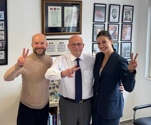 Në foton e ndarë në rrjet, Garo është me drejtorin e Komunikimit në PD, Alfred Lela dhe të dërguarin nga LaCivita, Philip Griffin.