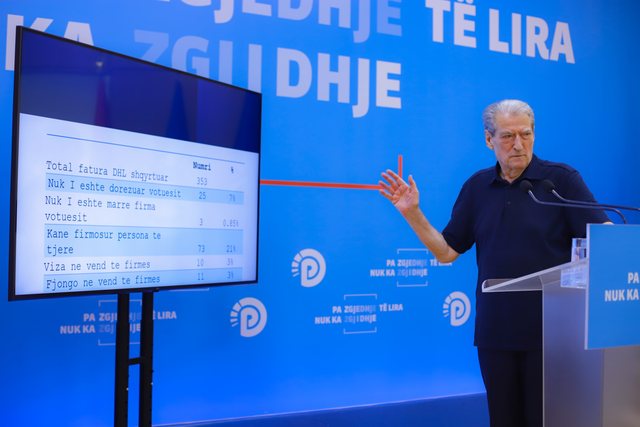 Berisha thotë se 15 mijë e 474 vota nuk kanë mbërritur në destinacion për arsye politike. Referuar pamjeve, Berisha shton ndër të tjera se në 50 përqind të rasteve nuk faktohet marrja nga votuesi e fletëve të votimit.